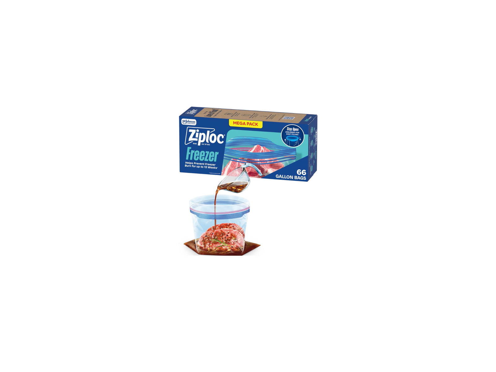These Ziploc Gallon Freezer Bags feature a convenient stay-open design with a sturdy stand-up bottom, making them easy to fill for meal prep, bulk food storage, and freezer organization. The Grip n’ Seal double zipper provides a strong, leak-resistant closure to help prevent spills and protect food from freezer burn.